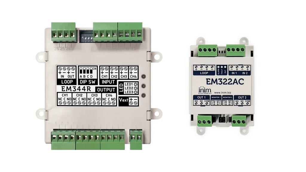 I moduli della serie EM3xx offrono una gestione avanzata di ingressi, uscite e zone convenzionali all’interno di impianti collegati al loop. A seconda del modello, sono disponibili fino a 4 ingressi, di cui 2 configurabili come zone convenzionali, alimentate dal loop o da fonte esterna. Le 4 uscite, anch’esse variabili per tipo, possono essere supervisionate per il controllo di segnalatori ottico-acustici o utilizzate come contatti puliti. Una soluzione modulare e flessibile per gestire in modo completo dispositivi e linee convenzionali